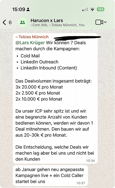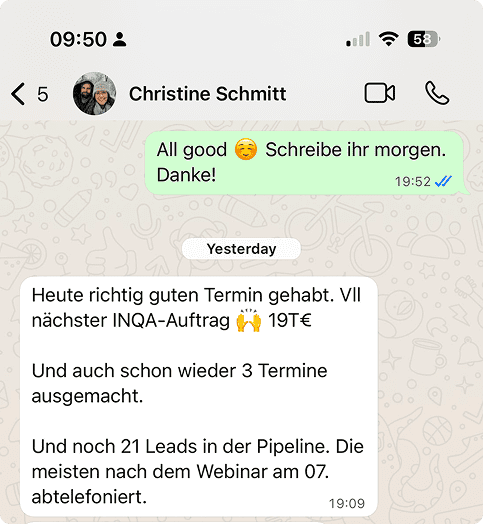 Positionierung geschärft, Outreach aufgesetzt, Content Prozess aufgesetzt. Sales Prozess aufgesetzt.